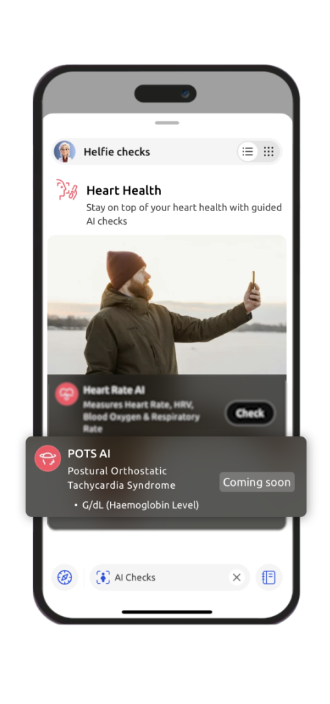 Helfie’s POTS AI assists your health monitoring by analysing heart rate, blood pressure, and autonomic patterns to check for POTS and related conditions, in seconds.