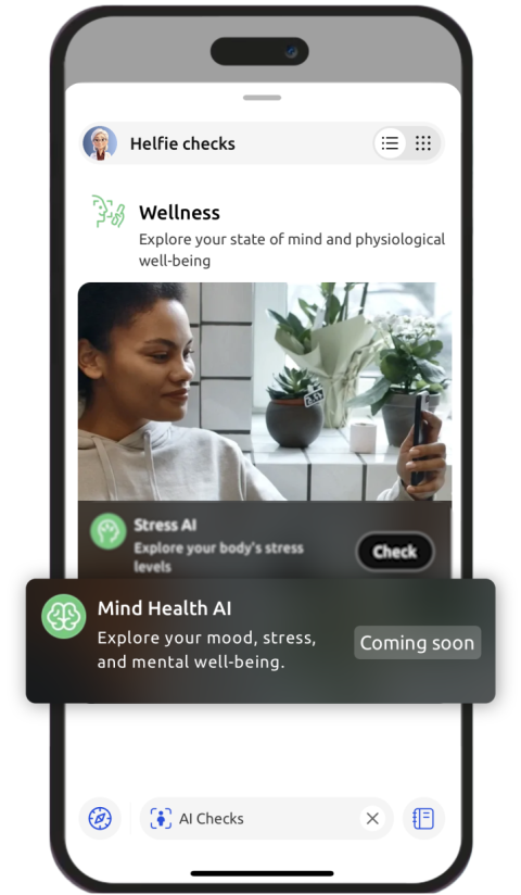 Mind Health AI check is currently in training and is coming soon, but in the meantime you can chat to Helfie AI about it inside the app.